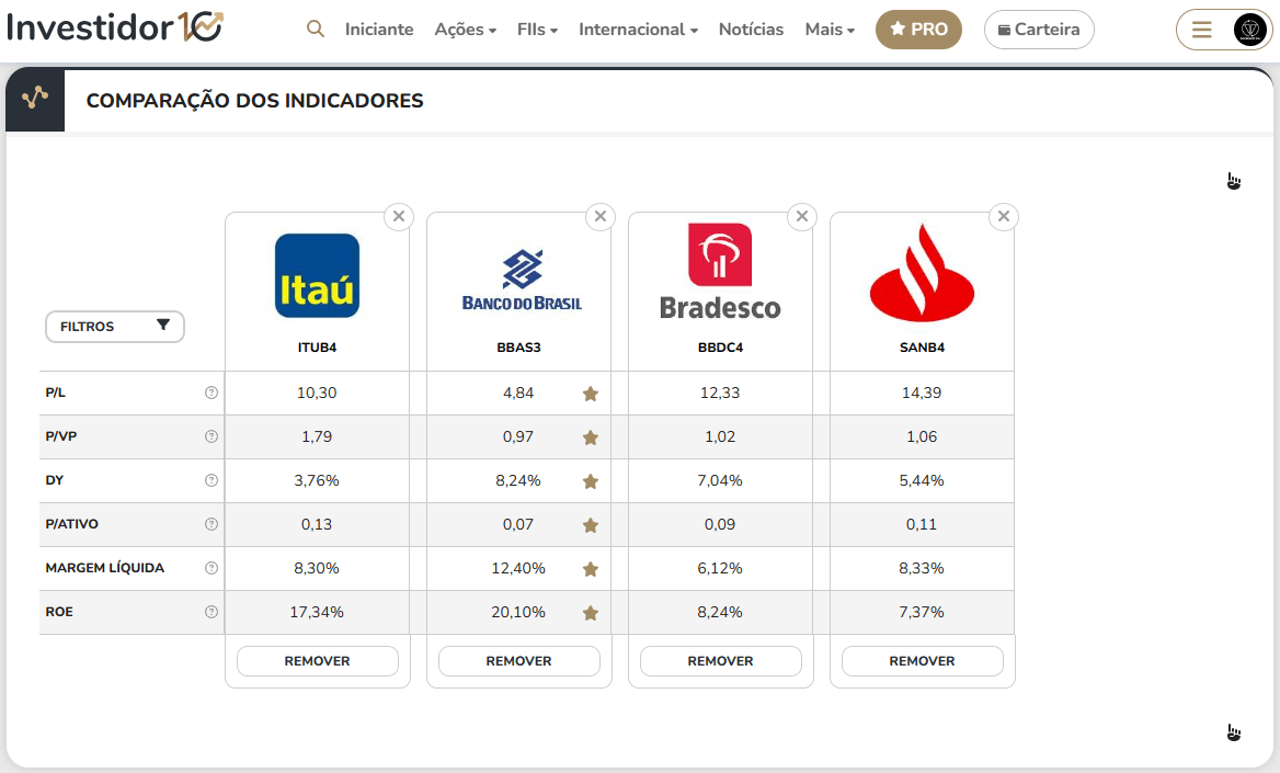 Fonte: Comparador de Ações - Investidor10